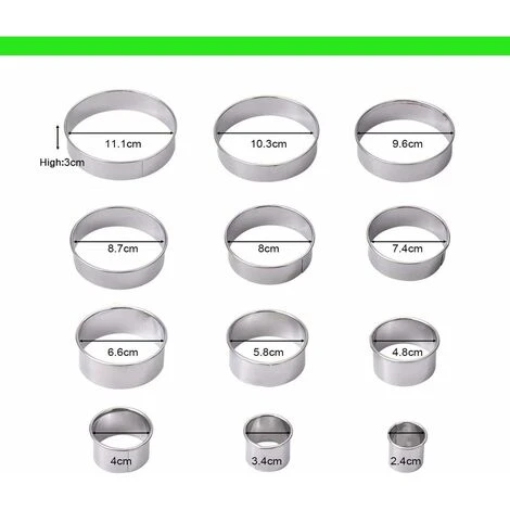 Une varit de tailles: 12 tailles diffrentes demporte piece rond, de 2,4 cm 11,5 cm, en acier inoxydable de coupe circulaire, une varit de styles, un couteau ptisserie rond pour rpondre divers besoins.