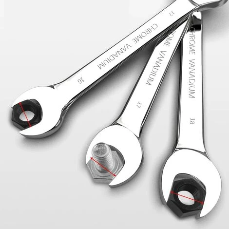 Acier au chrome vanadiumJeu de clés à cliquet en acier au chrome vanadium de haute qualité, la surface est résistante à la corrosion et plus facile à nettoyer. | Engrenages à cliquet 72 dentsL’extrémité à cliquet adopte un design à 12 points et 72 dents, et la balançoire de travail est de seulement 5 degrés | Qualité supérieureLe design épais de la clé à cliquet prend en compte la ténacité et la dureté, et ne se casse pas lors de l’utilisation. |