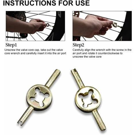 【Ce que vous obtiendrez】2 clé démonte-roue , 1. Ajustez l’étanchéité de l’obus de valve de la valve 2. Lors de la réparation du pneu, dévissez l’obus de valve pour laisser sortir l’air de la chambre à air, afin qu’il soit plus facile de retirer le pneu