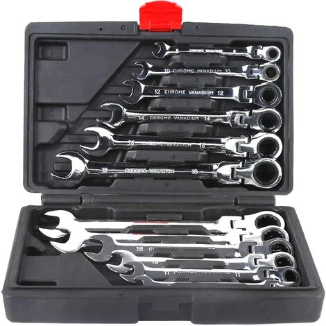 Jeu de 12 clés à cliquet double usage en acier au chrome vanadium 72 dents