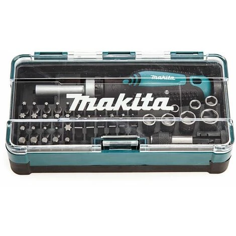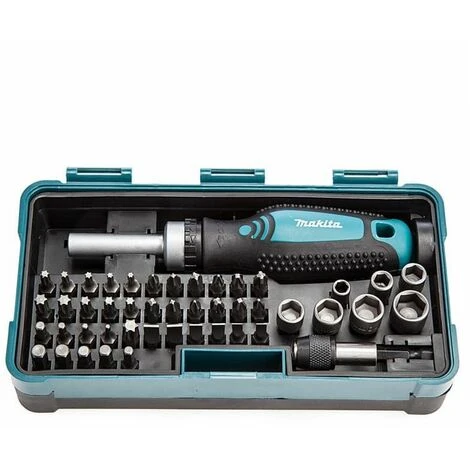 La trousse à outils Makita B-36170 convient pour enfoncer une variété de fixations et contient une poignée à cliquet ainsi qu’une sélection de douilles et d’embouts de tournevis qui conviennent également pour une utilisation avec des outils électriques tels que des perceuses et visseuses.
