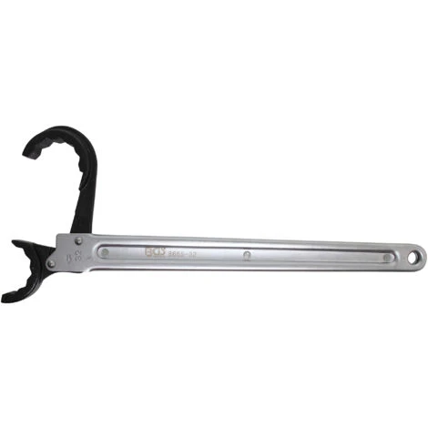 La clé s’ouvre pour passer autour du tuyau et se referme sur l’écrou pour une prise optimum.
