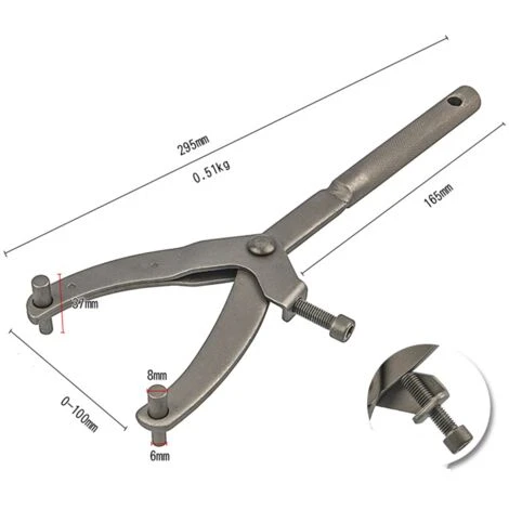 Caractéristiques : Il existe deux tailles de broches des deux côtés de l’outil, qui peuvent être utilisées pour des fentes de volant d’inertie de différentes tailles.