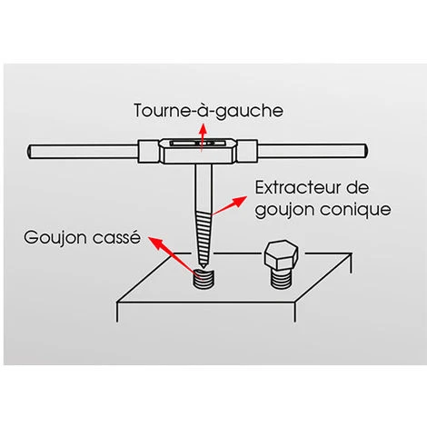 - Extracteur : Coffret de 5 extracteurs de goujons coniques – M3 à M18