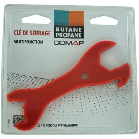 La clé de serrage multifonction Babaz facilite le serrage et le desserrage des écrous de bouteille et flexibles de gaz Butane et Propane (serrage à gauche).