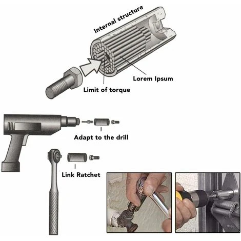 Taille de l’adaptateur: 3/8 pouce, longueur 5 cm. Vis différentes formes de matrices, peuvent être démontés, comme une tête de vis, des crochets, des vis. Après des milliers de liens et d’autorégulation.
