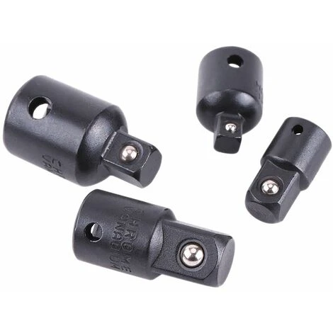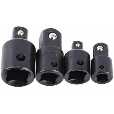 Il s’agit d’un ensemble de 4 pices durables adaptateurs de rduction et d’augumentation. La construction en acier au chrome-vanadium robuste est conue pour tre utilise avec des cls cliquets. Une finition en oxyde noir rend chaque pice rsistante la corrosion et trs durable. La bute billes ressort maintient vos douilles fixes et scurises. Il y a une gamme de tailles pour adapter de nombreuses combinaisons de douilles ou de cls, y compris 1/2(M)–3/8(F), 3/8(M)–1/4(F), 3/8(M)–1/2(F) et 1/4(M)–3/8(F).