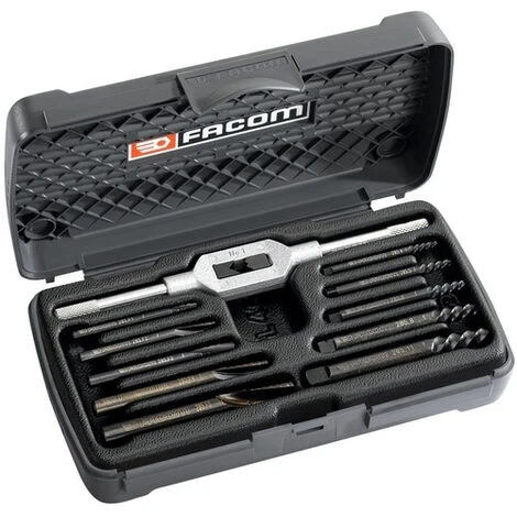 - 285.J10 : Jeu de 5 extracteurs de goujons + 5 forets coniques adaptés et un tourne à gauche