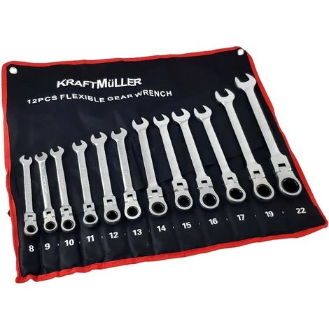 Jeu de clés à cliquet avec sac de transport, 12 pièces Cles, Flexible, articulées, 8 à 22mm. Le kit parfait pour les mécaniciens, garagistes et bricoleurs.