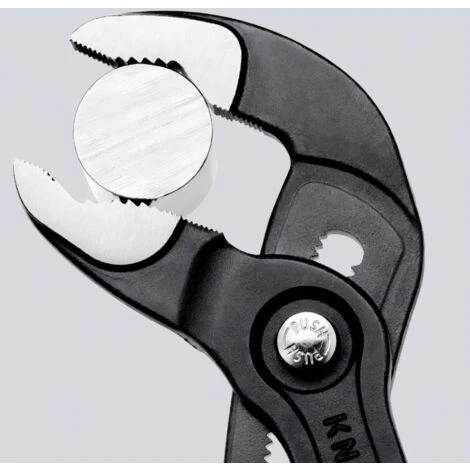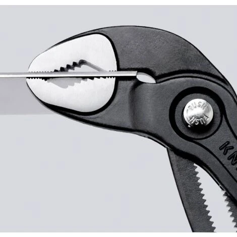 Avec poignée multi-composants mince sans col pour une meilleure manipulation et un transport plus facile réglable sur simple pression d’un bouton directement sur la pièce : manipulation rapide et confortable. Réglage de précision : permet une adaptation optimale aux objets de toute taille. Poignées ergonomiques moulées pour s’adapter à votre main. Nombre de positions de réglage, voir tableau. Encliquetage sécurisé de l’axe de pivot : pas de déréglage accidentel. Articulation traversante : stabilité maximale grâce au double guidage. Autobloquante sur tubes et écrous : ne glisse pas sur la pièce, pour un travail nécessitant moins d’effort. Surface de préhension à dents avec traitement de trempe spécial, dureté d’env. 61 HRC : serrage sûr et durable grâce à une grande résistance à l’usure. Réglage simple d’une main Ergot de protection évitant les pincements. Effet de levier impressionnant : transfert de force optimal Acier électrique au chrome-vanadium, forgé, trempé à l’huile en plusieurs passages
