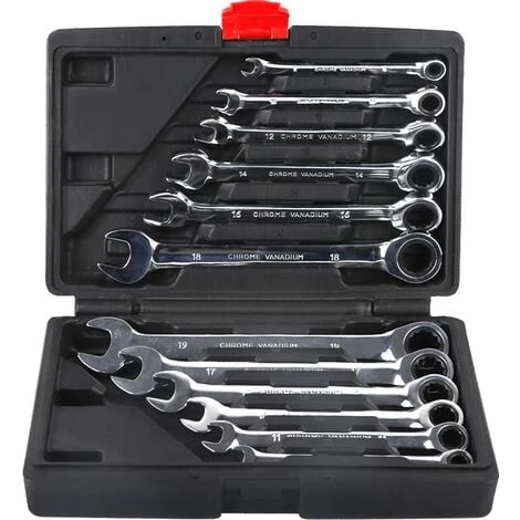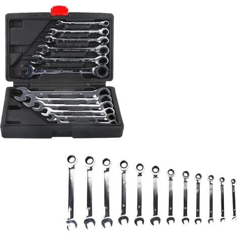 🔧【Matériau Solide】Lot de 12 clé plate à cliquet est en alliage de chrome vanadium poli, résistant à la corrosion. Conception ergonomique, durable.