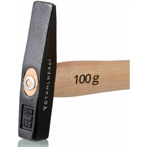 Marteau/marteau de serrurier de haute qualité 100g avec une tête robuste en acier forgé. Poids bien équilibré, poignée ergonomique en bois d’hickory très résistant, incassable et durable.