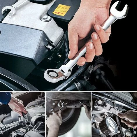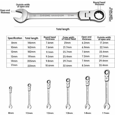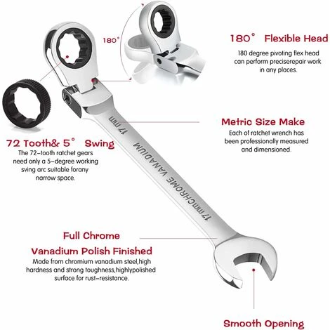 - Jeu de 6 clés à cliquet pliantes chromées, en acier au chrome vanadium, haute dureté, brillantes et inoxydables.