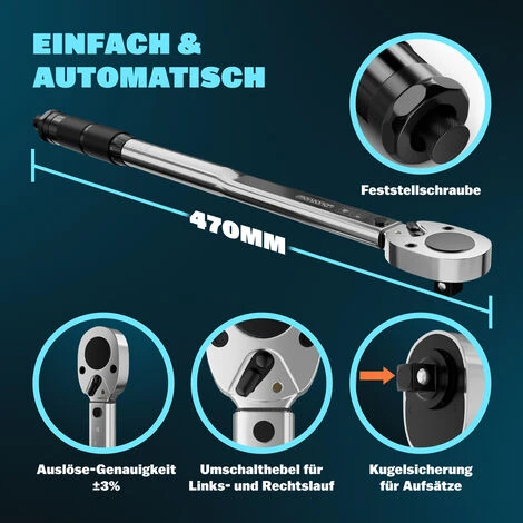Lorsque le couple de rotation est atteint, un signal par clic facilement audible et perceptible retentit.