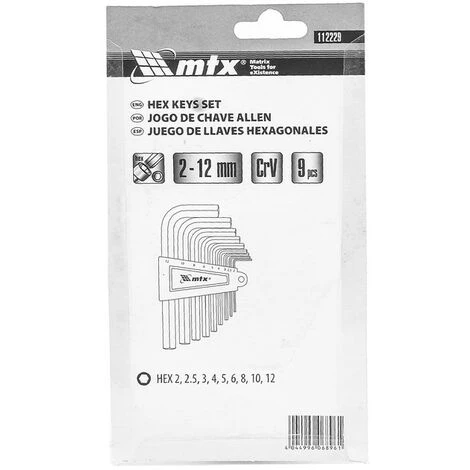 Le jeu de clés Allen hexagonales, dites « six pans » MTX est conçu pour réaliser tous vos travaux nécessitant de visser (mécanique, meubles, etc.). Les clés sont en acier chrome vanadium, un métal résistant et durable.