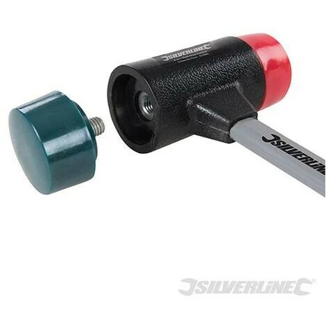 Têtes en nylon interchangeables et manche en acier. Diamètre de la face 35 mm. Poignée à forte adhérence résistante à l’huile et aux produits chimiques. Fournies : 3 têtes en plastique anti-marquage et une tête en métal.