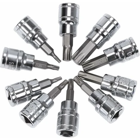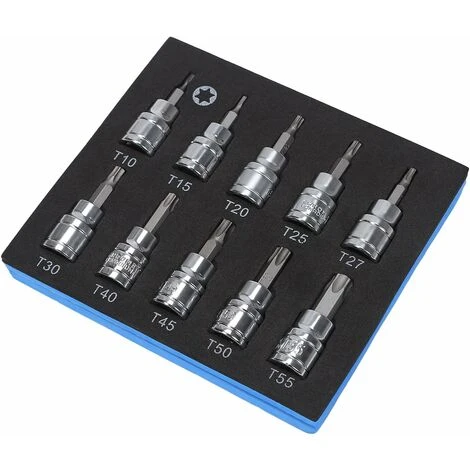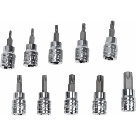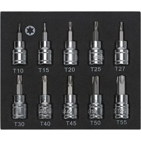 10 pièces incluses : tournevis 3/8 48 mm Longueurs : T10, T15, T20, T25, T27, T30, T40, T45, T50, T55